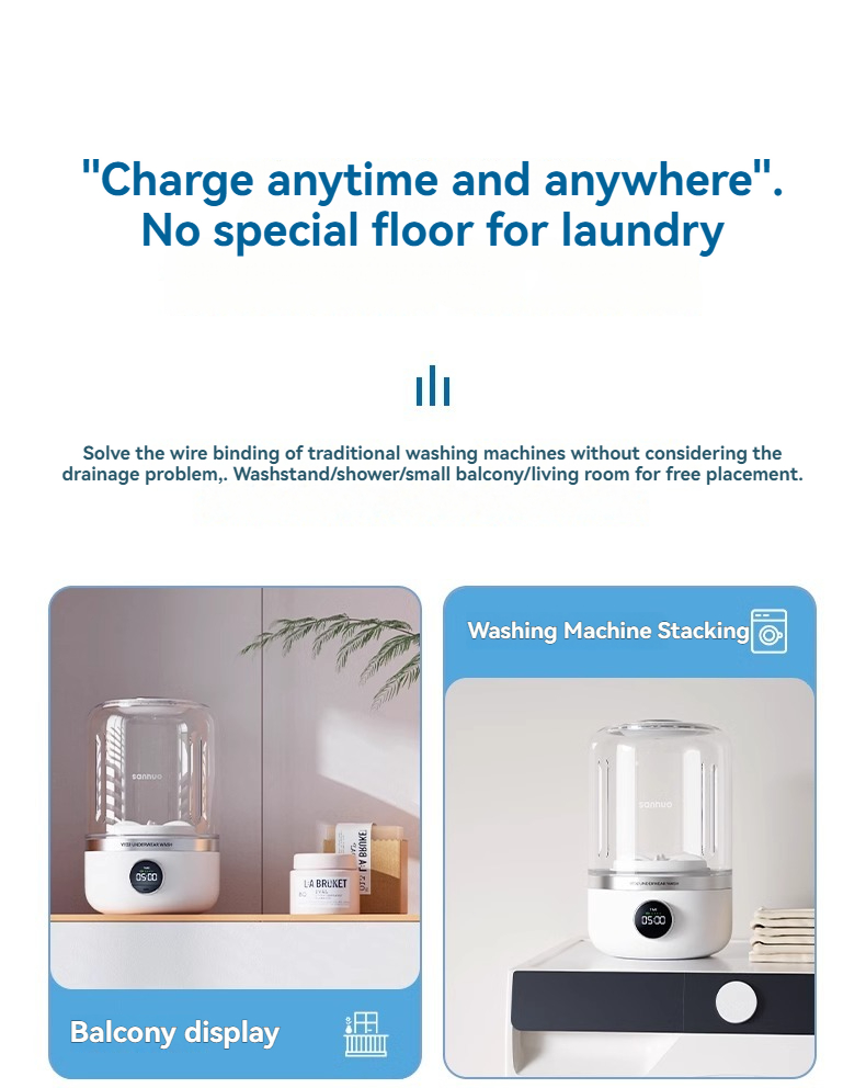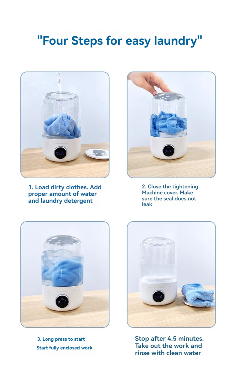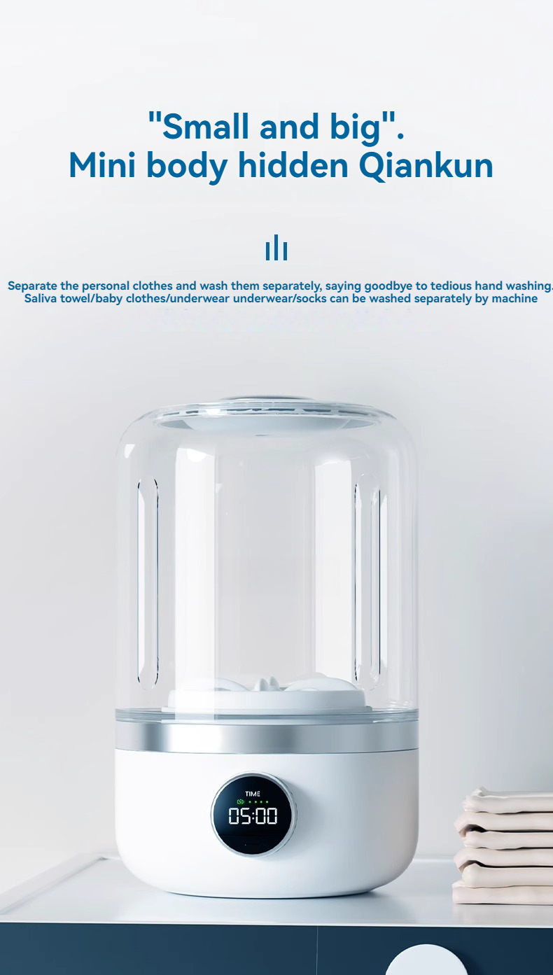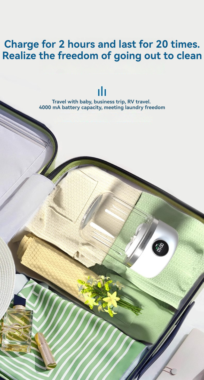 Portable Mini Washer, USB Rechargeable Cordless, 1.2L Capacity For Underwear, Socks & Baby Clothes, 3 Cleaning Modes, Quiet & Compact For Travel,