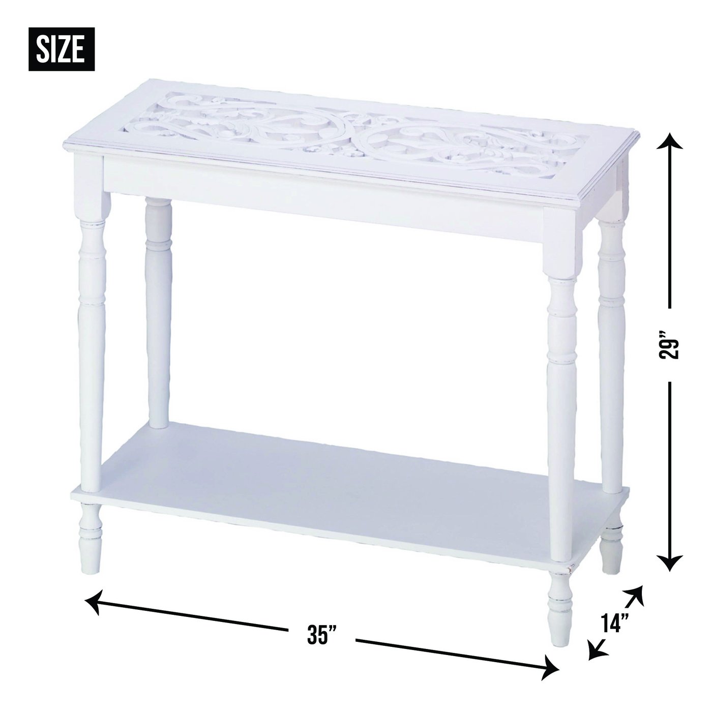 • Turned legs and an intricately carved top add rich visual appeal to this enchanting white wood table. Functional and stunning home décor that will look amazing anywhere you display it!
