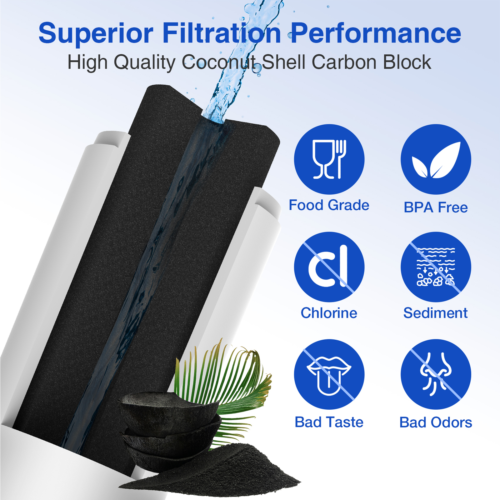 High Quality: BPA-free and food-grade materials. This filter is made from high quality natural coconut shell activated carbon.
